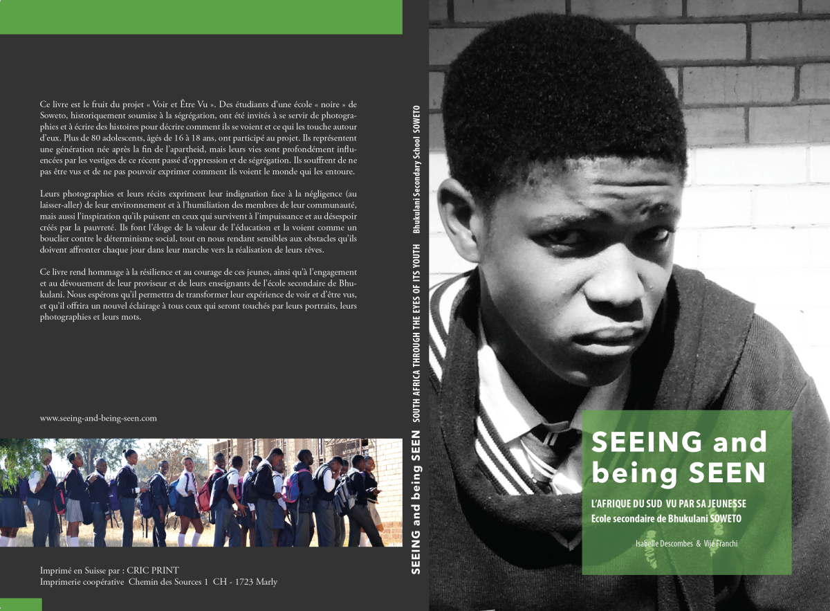 L’impact de ce processus sur les jeunes et sur nous a dépassé largement nos attentes, et leurs visions et voix nous ont portées au delà des limites fixées pour le projet. La force, la générosité et la vitalité avec lesquelles ils s’exprimaient et partageaient leurs visions d’eux-mêmes et de l’Afrique du Sud dans laquelle ils se voient grandir et évoluer ont inspiré Isabelle Descombes à prendre chaque jeune en photo et à construire un livre autour de leurs portraits. Les 85 portraits (photos accompagnée des récits de vie de leurs auteurs, aspirations, et visions de et pour l’Afrique du Sud) sont exposées dans un ouvrage publié en français et anglais, intitulé « Seeing and Being Seen : South Africa through the eyes of its youth – Voir et Etre Vu : l’Afrique du Sud vue par sa jeunesse ».